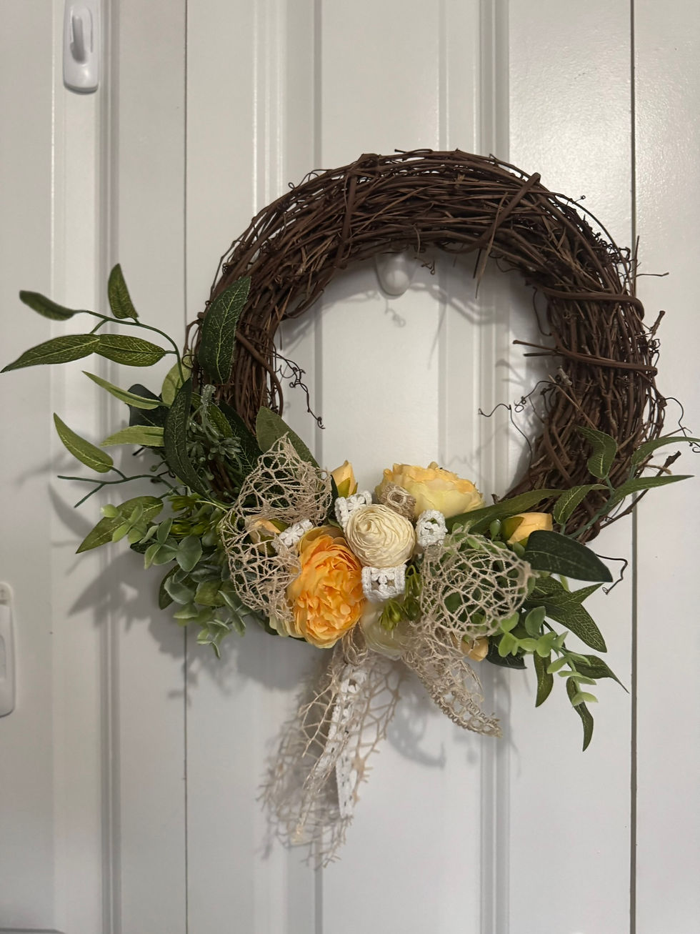 Purple Rose Grapevine Wreath with Ivory Ribbon, 18"
